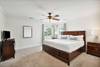 The master suite's ensuite bathroom, accessible from the bedroom, showcases a double vanity, a separate soaking tub, and a spacious walk-in shower.